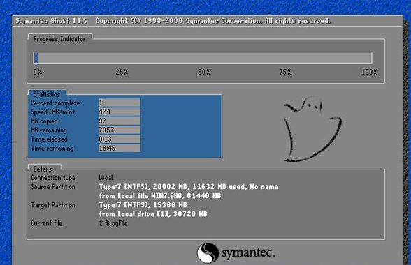 4、重启电脑后,开始执行C盘格式化以及系统还原到C盘的过程。