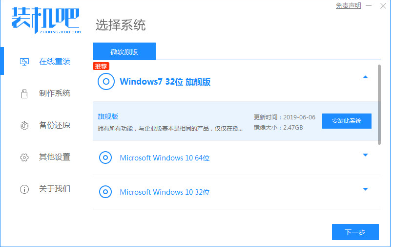 使用装机吧在线一键重装系统win7: