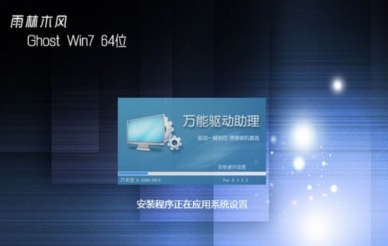 6、上述过程结束后,电脑会再次重启,进入这个界面,开始安装雨林木风win7系统。