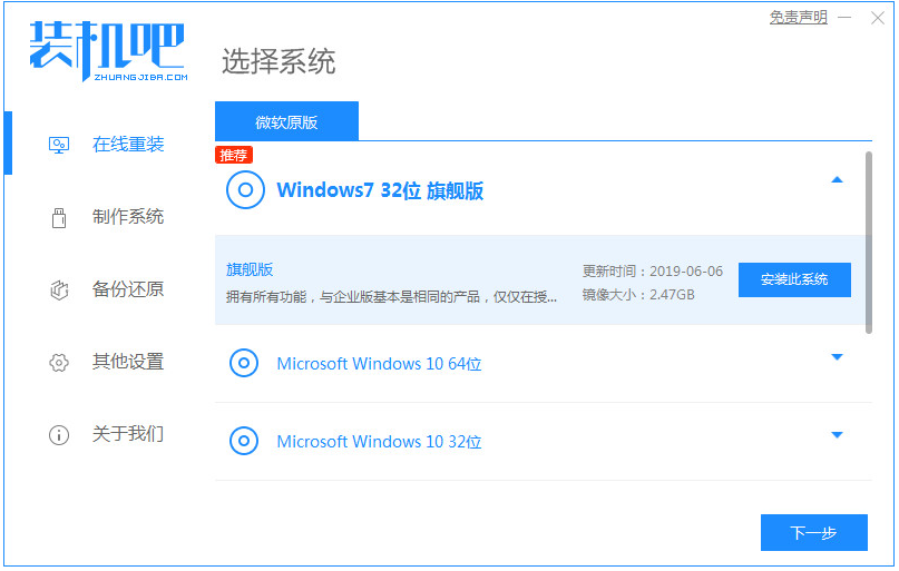 软件版本:装机吧一键重装系统软件+1个8g以上的空白u盘