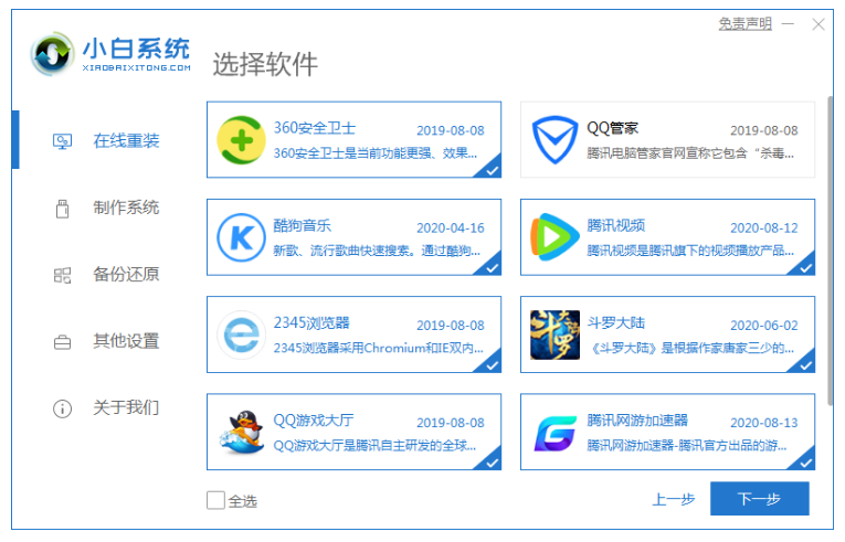 步骤四:选择好系统后,我们可以选择预装一些我们自己想要的系统软件,然后下一步稍微等待一段时间就可以了。