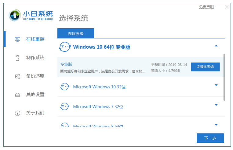步骤三:电脑进入页面后,大家在左侧选择在线重装功能,然后选择好需要安装的系统版本后,选择安装此系统。