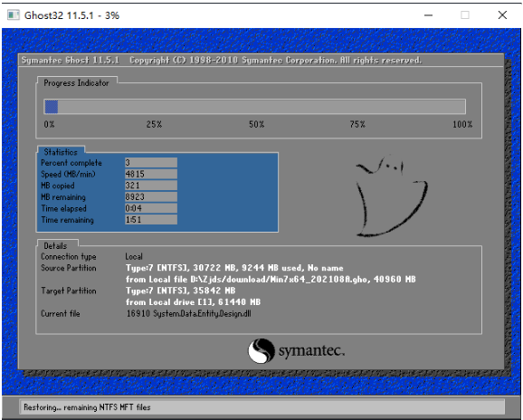 6、进入之后,系统将会自动进行备份还原,耐心等待完成。