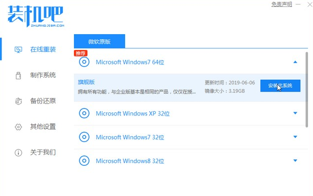 1、第一步我们打开浏览器搜索下载装机吧一键重装系统软件,选择win7系统。