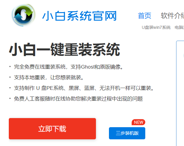 1、准备重装系统的软件,搜索“小白系统官网”,在官网内下载小白一键重装。