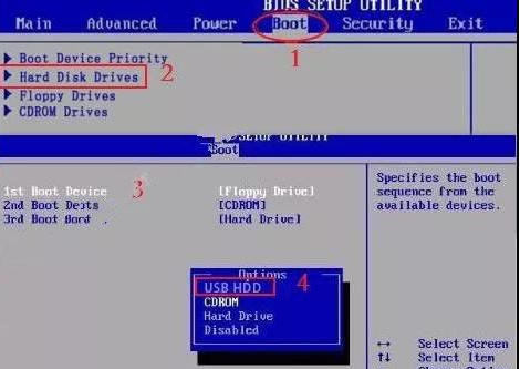 1.进入电脑Bios设置U盘为第一启动项(第一种方法使用快捷键启动无法选择U盘时用此方法设置)。由于不同电脑进入Bios设置U盘启动各有差异,以下仅供参考(建议用户根据自己的电脑品牌自行搜索设置方法)。开机出现Press“ F2” to enter SETUP 时,按F2键(具体以自己的电脑开机显示为准)。按键盘上的方向键切换到“BOOT”项,点击“Hard Disk Drives”,将“1ST BOOT” 修改为“USB HDD”按F10保存更改,重启时就会自动载入U盘。