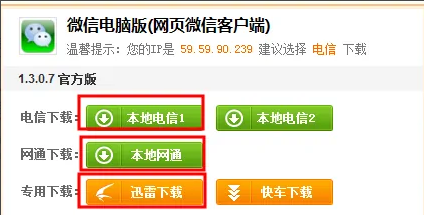2、接下来就会弹出一个下载线路的选择界面,根据所使用的网络来选择下载路线,如使用电信宽带的就用本地电信1,如果不知道所用为什么网络,直接用迅雷下载。