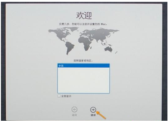 12、当系统安装完成后会自动重启电脑,点击继续进行mac系统配置就可以正常使用新系统。