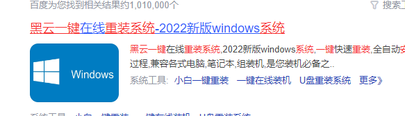 1、黑云一键重装系统如何下载,首先在百度上搜寻。