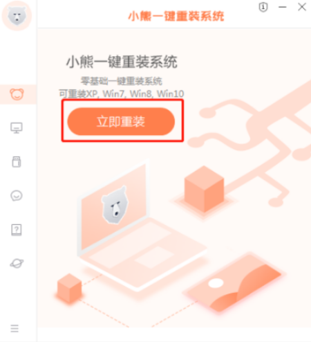 1.首先我们下载小熊一键重装系统工具,然后点击立即重装。