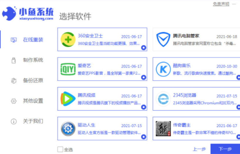 2.预选系统软件进行下载,勾选完成点击【下一步】。