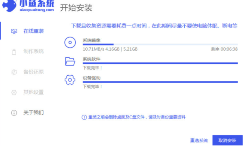 3..开始下载镜像文件和一些系统驱动,等待系统下载完成。