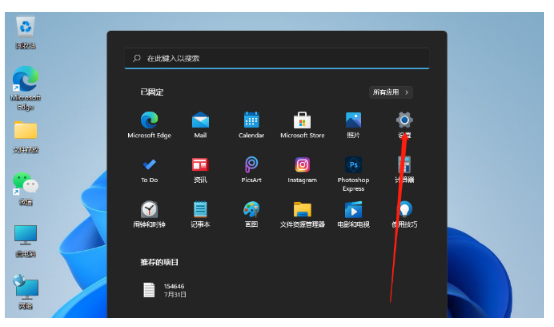 当我们需要调整win11鼠标灵敏度时,首先单击桌面下方的开始菜单,然后选中设置选项。