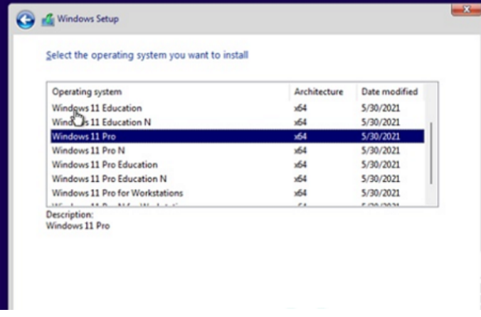 4、等待安装程序运行完成,会弹出如下界面,在其中选择“windows11 Pro”