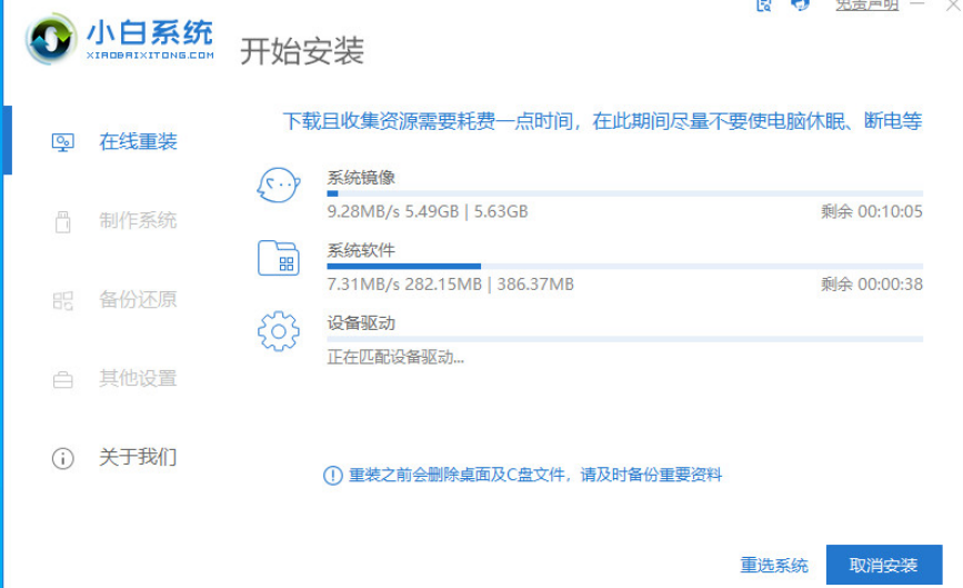 2、接下来您所需要做的就是耐心等候下载,毕竟小白一键重装系统工具都是采用智能化重装操作,所以基本上不需要太多操作。