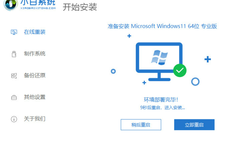 3、下载完成 Windows 11 镜像后软件会自动部署,我们要做的就是选择立即重启即可。