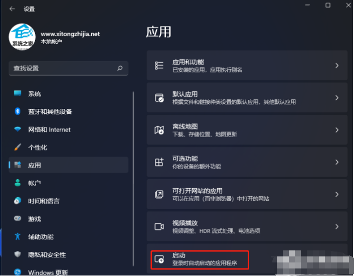 4、再找到并点击启动(登录时自动启动的应用程序);