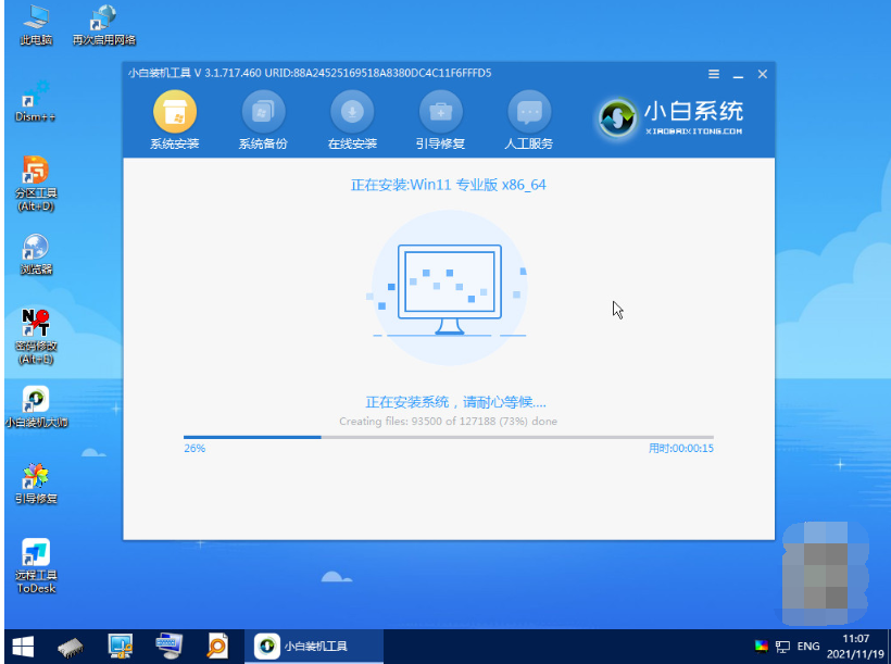 5、到时小白装机工具会自动打开并安装win111系统,我们无需操作。
