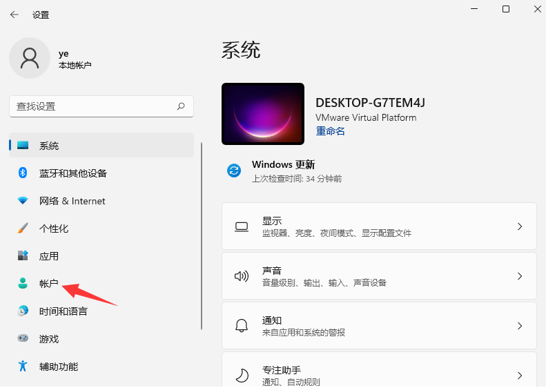 2、接着点击左侧的“账户”。