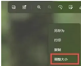 3、在菜单中点击“调整大小”。